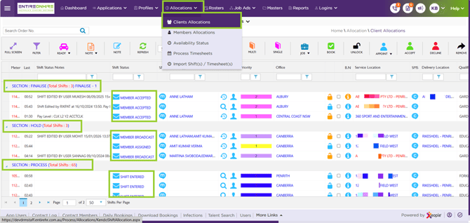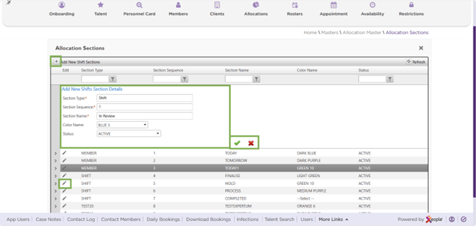 - Once you create a new Shift Section and assign statuses to it in the Allocation Master, it automatically appears in the Client Allocations.