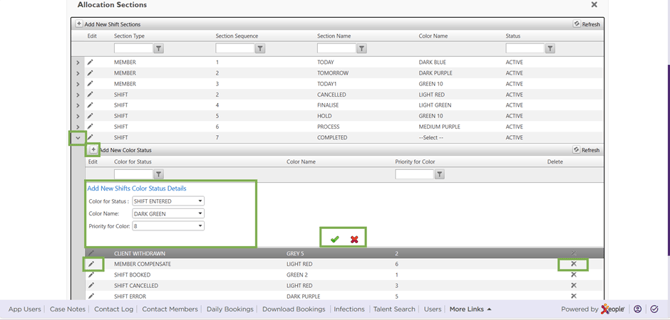 Add New Shift Colour Status for Shift Stage (Section)(s)