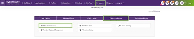 The allocation section categories are managed through Master Data. To access them, follow the steps below: