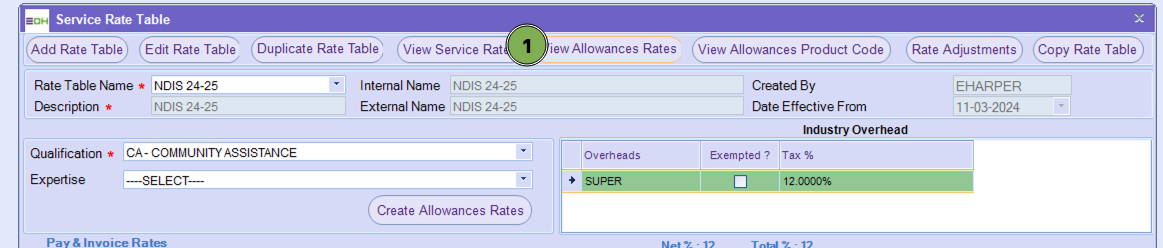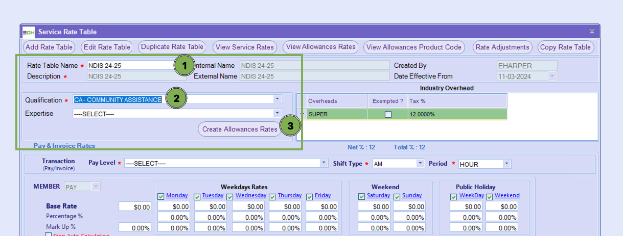 Select your rates table and qualification the rates table applies and then select Create Allowance Rates