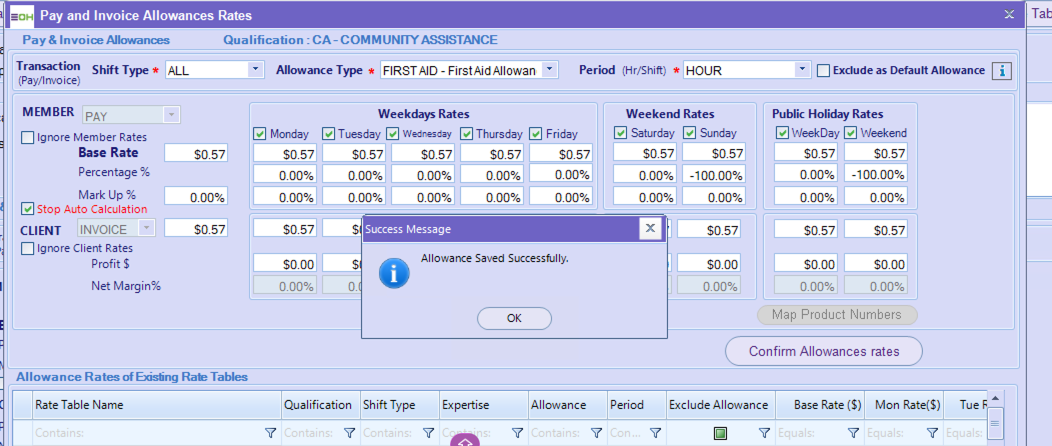 Then enter the Pay Rates and then Click “Confirm Allowance Rates”