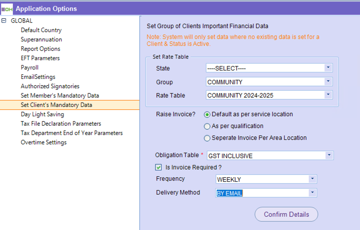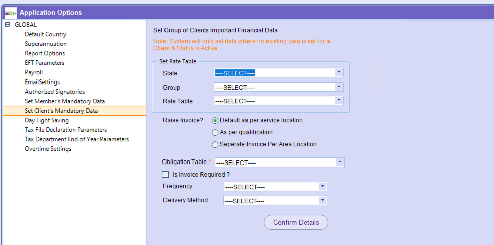 October 6, 2025 Application Options - Global Setting - Set Client's Mandatory Data PLEASE CONTACT SUPPORT PRIOR TO MAKING ANY CHANGES TO ENSURE IT IS DONE CORRECTLY EXAMPLE: