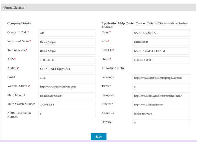 - Update any company details, including Name, Address, Website URL