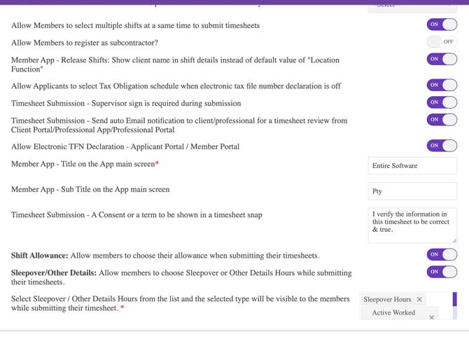 - Shift Allowance: Allow members to choose their allowance when submitting their timesheets.