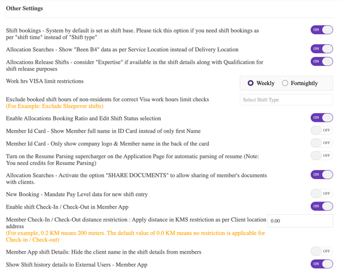 (For example, 0.2 KM means 200 meters. The default value of 0.0 KM means no restriction is applicable for Check-in / Check-out) - Member App shift Details: Hide the client name in the shift details from members