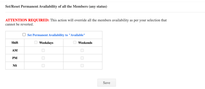- ATTENTION REQUIRED: This action will override all the members availability as per your selection that cannot be reverted.