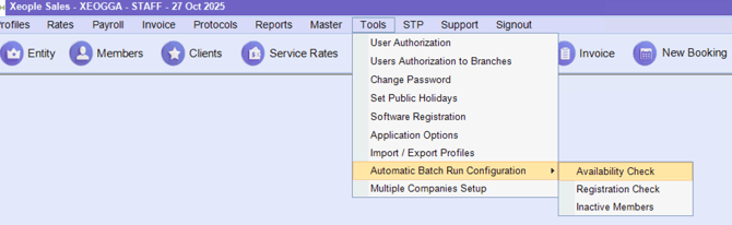 The Availability Check function within the Automatic Notification Configuration allows the system to monitor member activity and send notifications when a member has not entered any availability for a defined number of days.