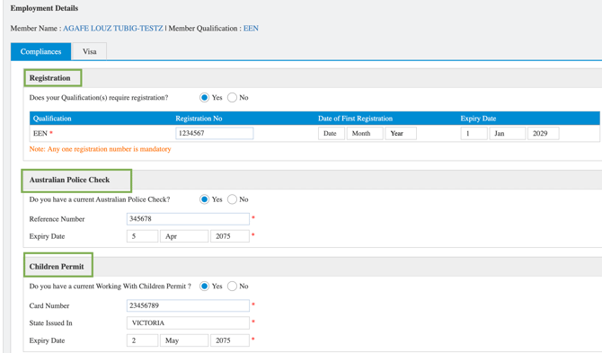 The Registration Check function monitors the expiry of a member’s professional registration (or similar compliance items such as Police Checks or Working with Children Permits) within the Employment Details section of the member profile.
