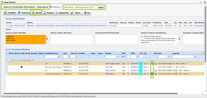 - Upon allocating members, the shift status will change from Shift Entered to Member Broadcast.