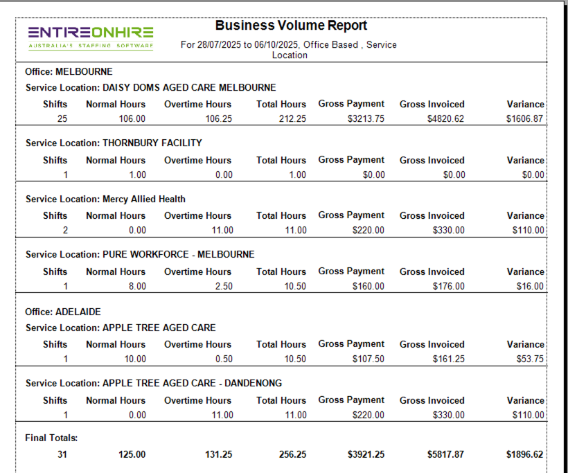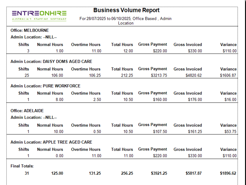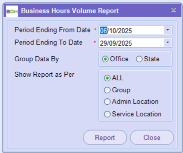 · Show Report as per: All/Admin Locations/Service Location Authorised Users can access the report by selecting: