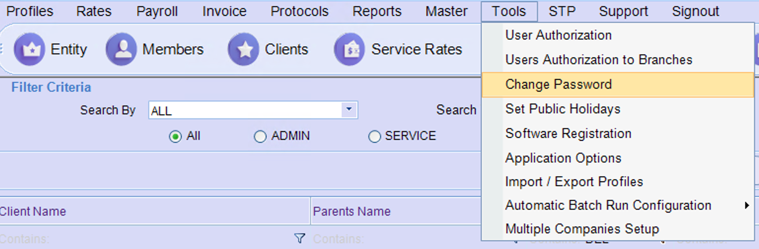 Log in to the Finance Portal and navigate to the "Tools" menu. -