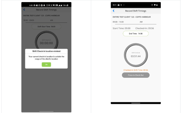 The Member GPS Timestamp Required is an optional location-based setting that once enabled will prompt members to check-in prior to their shift commencement and allow them to check-out on completion.