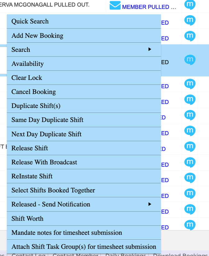 - Confirm: Used when the client confirms but member still needs to respond. If the member accepts, shift goes straight to Booked. Also used when time is changed.