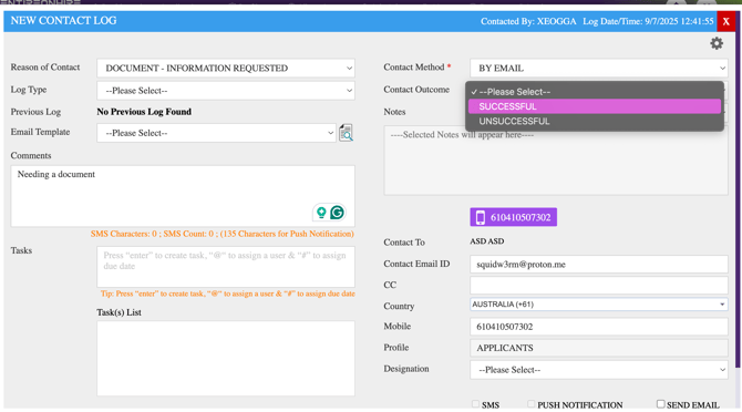 To add a new contact outcome, press the "plus" icon in the top left corner and fill out the mandatory fields including: