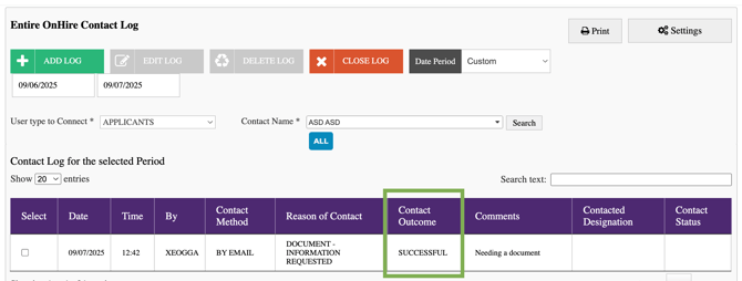 These then appear against logs in the contact log and can be reported upon in the Contact Log Report :