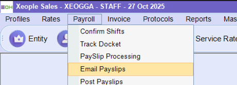 (a) Click on the ‘Email Payslips’ menu item from the Payroll menu.