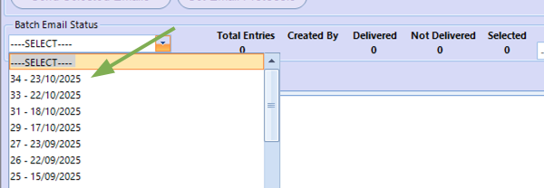 (b) Select the relevant pay run from the drop down list by selecting the period ending date, as shown circled in red. The members who have elected to receive payslips via email will be listed.
