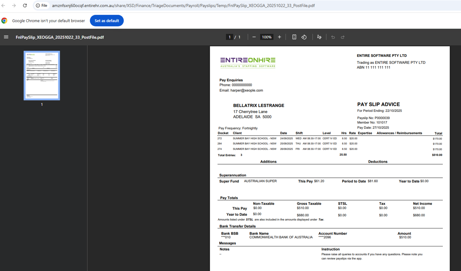 All pay run details are also accessible through Entire OnHire reporting functionality.