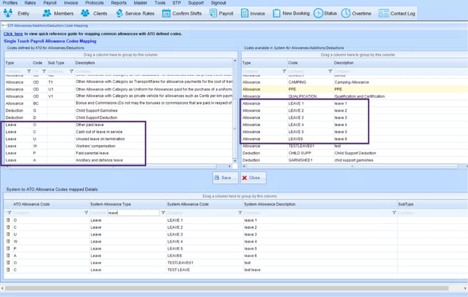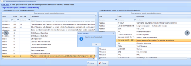 →Allowances Mapping and Single Touch Payroll Allowance Codes Mapping screen opens -