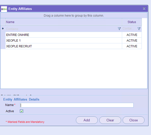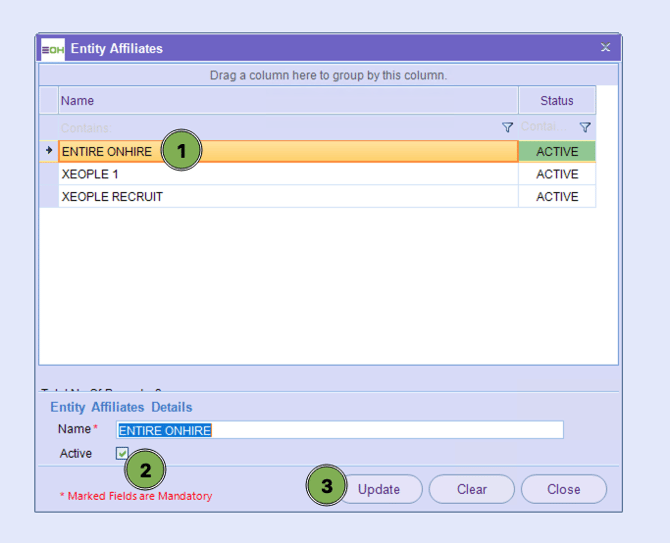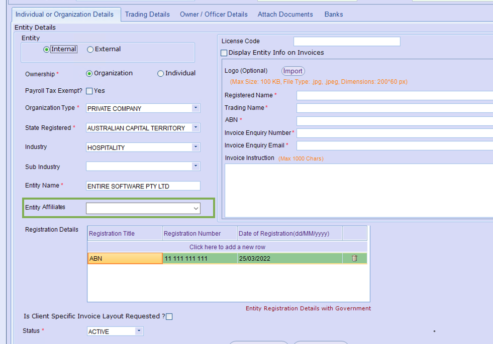 Within this section, you are able to update the Entity Affiliates relevant to the set-up of an organisation/Entity