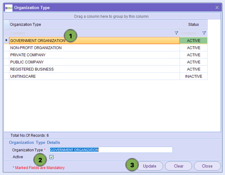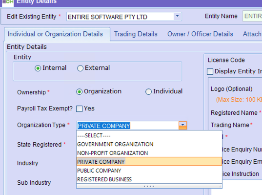 Within this section, you are able to update the Organisation Type relevant to the set-up of an organisation/Entity