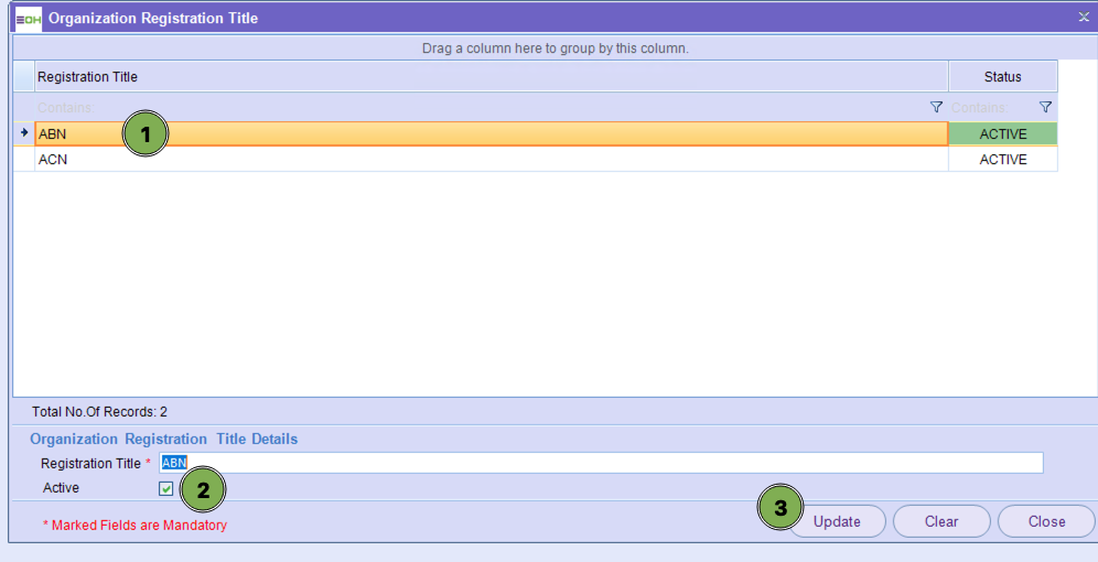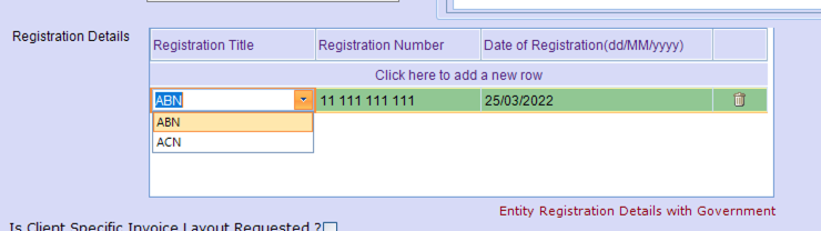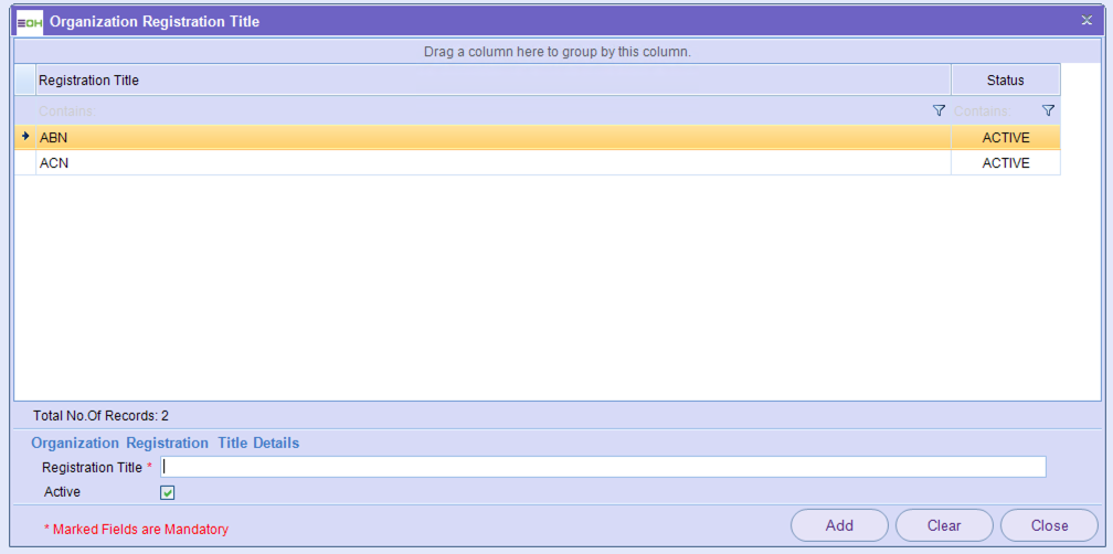 Within this section, you are able to update the Organisation Registration Titles relevant to the set-up of an organisation/Entity