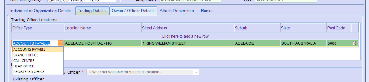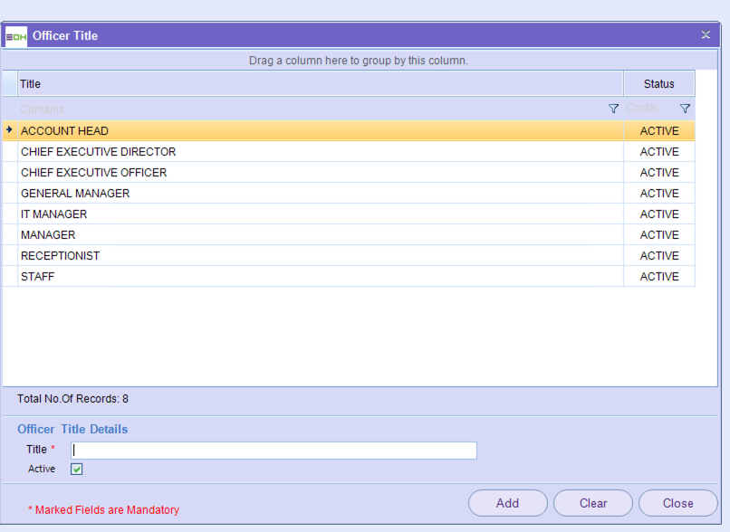 Within this section, you are able to update the Officer Titles relevant to the set-up of an organisation/Entity