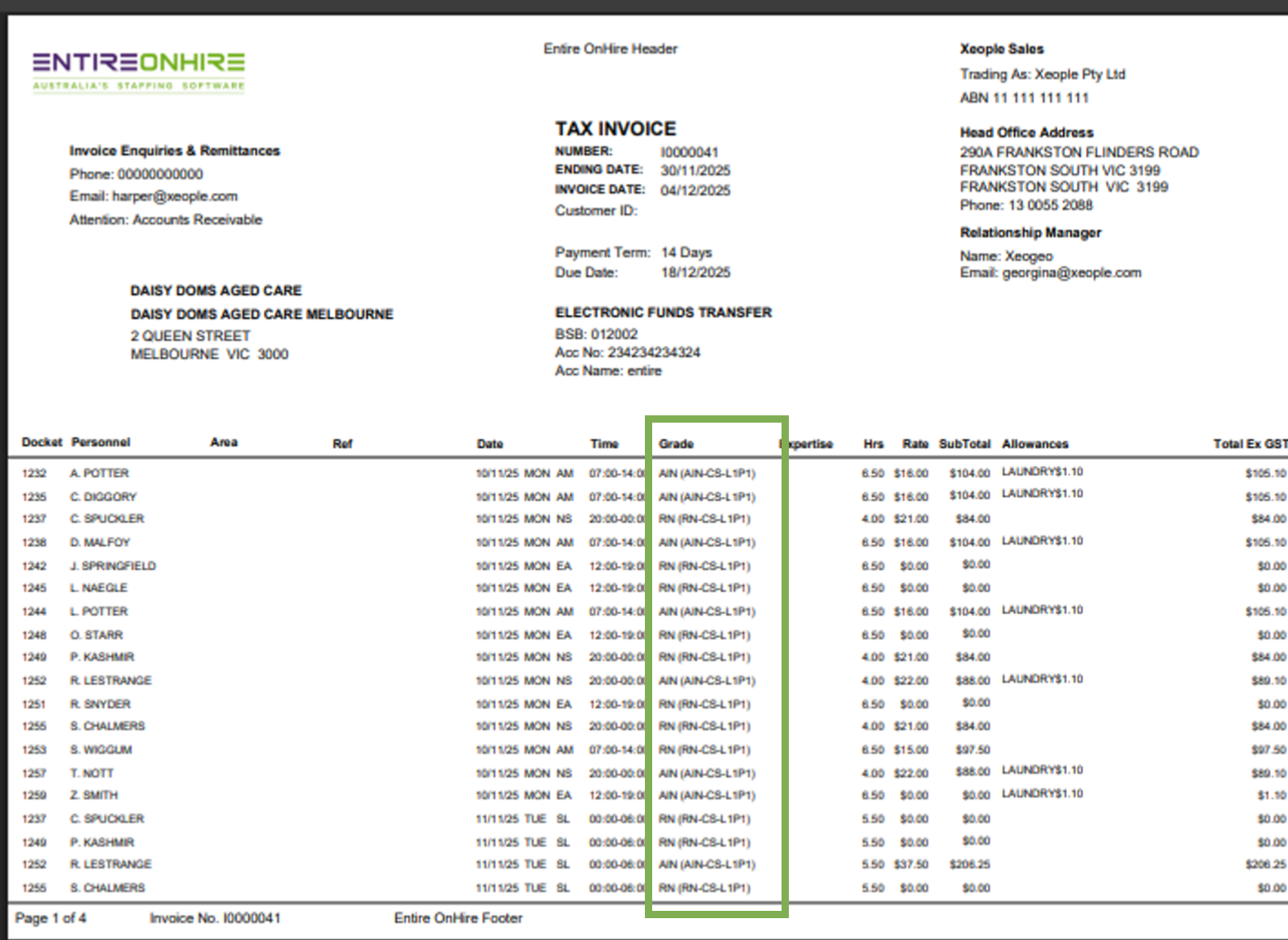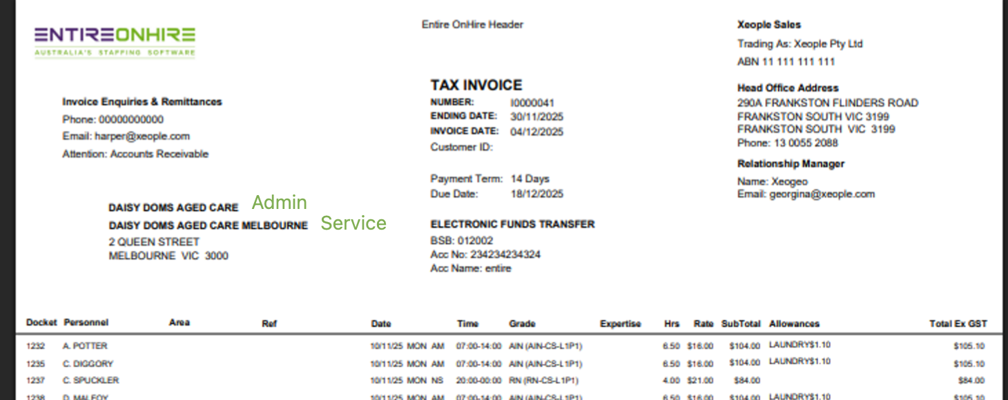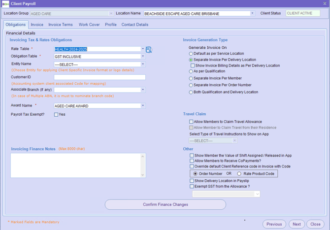 Invoicing Finance Notes - These is notes that will always occur when confirming shifts at these locations