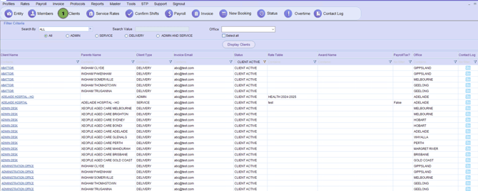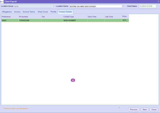 Here you can view the client details entered via the front end. Updates to this information can only be made within the front end (Allocations/Recruitment).