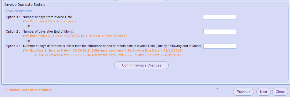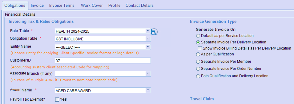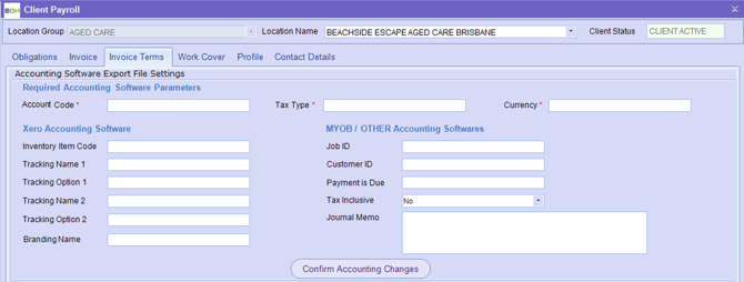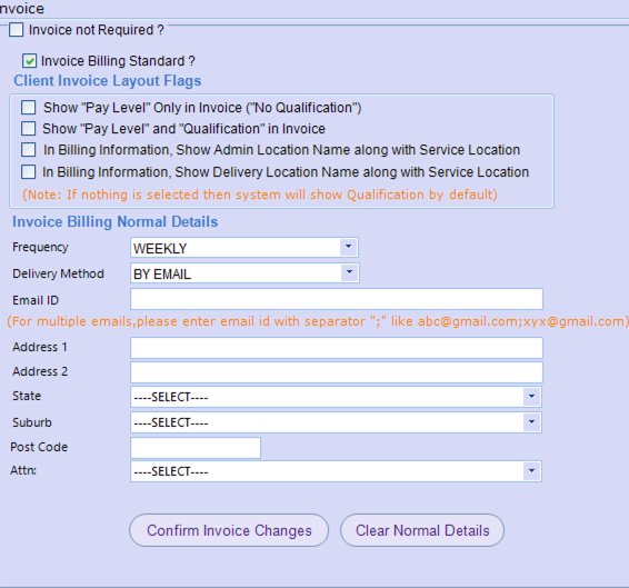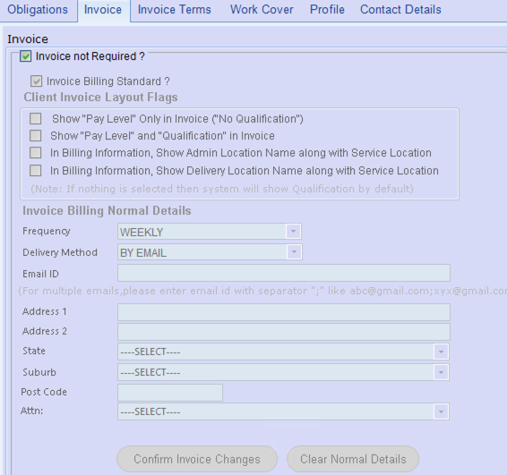 If this client requires different invoicing days than your standard set up within the masters you can update here