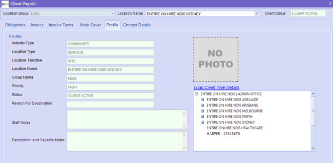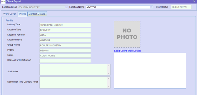 Here you are able to view the clients details that have been entered within the front end - You can only update this information within the front end (allocations/recruitment)