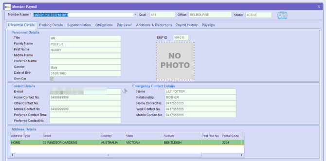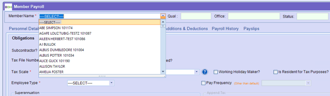 You are able to access all member information from this section, allowing a comprehensive view of each member’s record in one place. This includes personal details, banking and superannuation information, tax obligations, pay levels, additions and deductions, payroll history, and payslips. By centralising these details, you can efficiently manage, view, and update relevant member data, ensuring streamlined workforce administration and reliable payroll processing.