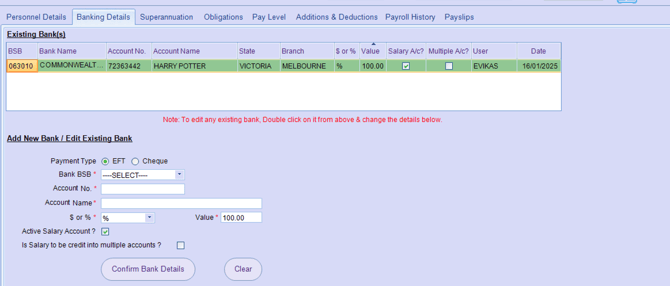 Banking Details