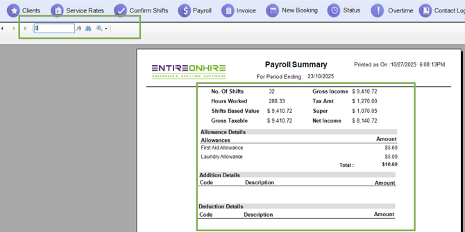 Note also that the user will not be permitted to delete specific shifts in the Payslip Manager Screen if the corresponding invoices have already been generated.