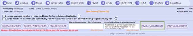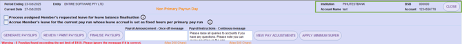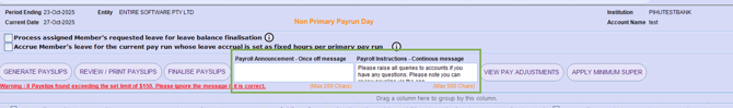 (c) Update the Payroll Announcement and Payroll Instructions fields as required.