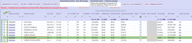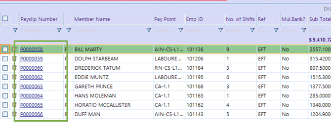 This will be evident as the hyperlink will no longer be present on the Payslip Number (suggesting that a payslip has not been generated yet).