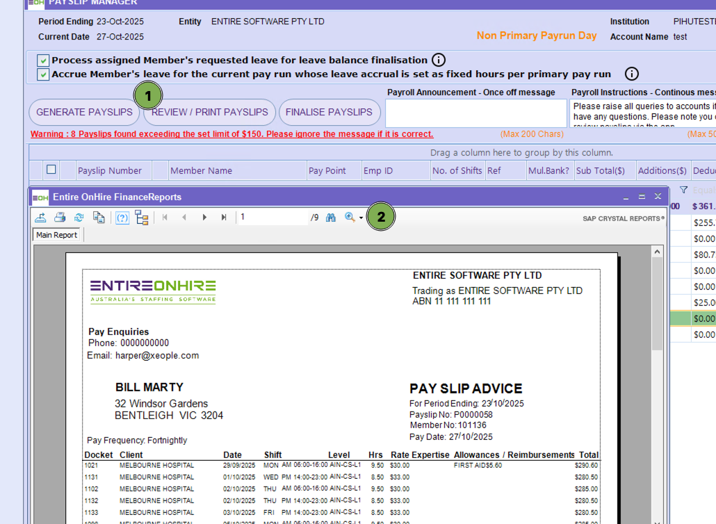 If updates are made in the Payslip Manager Screen, these updates will be automatically reflected in the payslips (and this can be seen by previewing the payslips as suggested above).