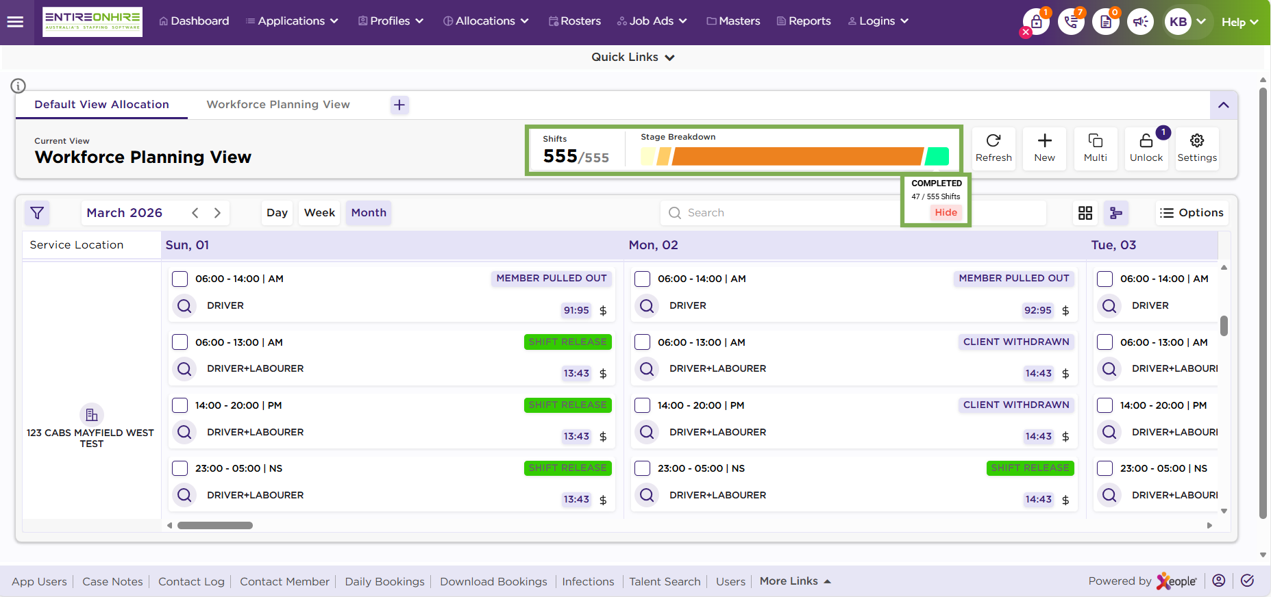 If the Allocation Section is Process, it includes statuses such as Shift Entered, Released, and Member Declined. All shifts under these statuses are grouped together, helping you easily identify shifts that are still in progress and may require attention.