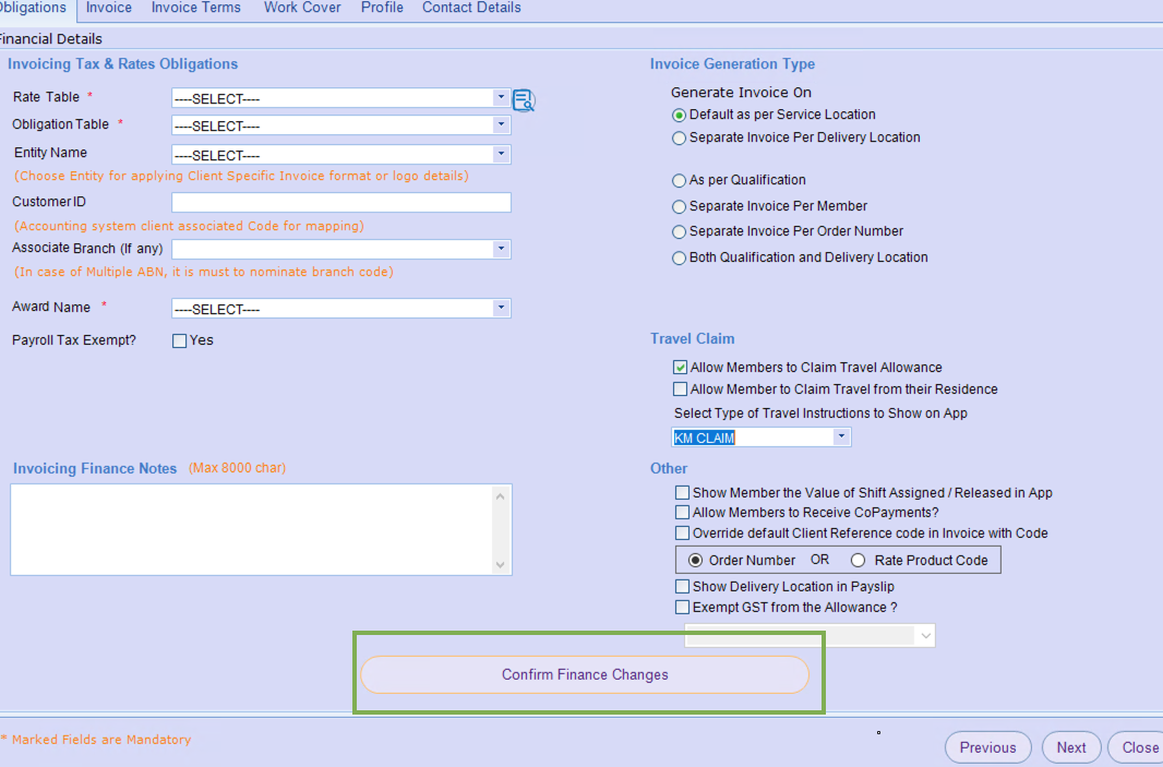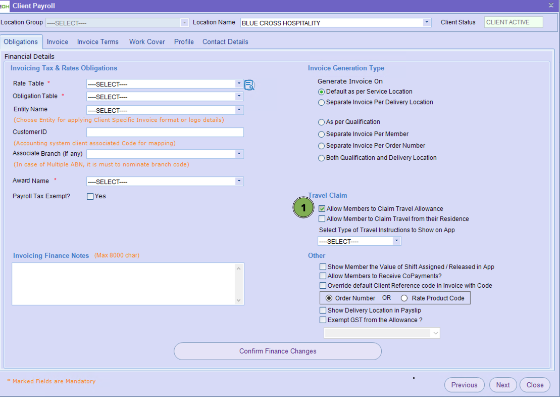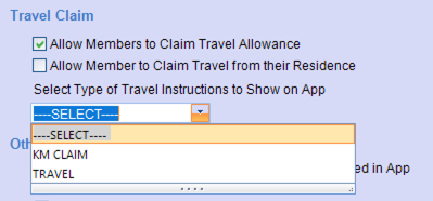 - Select "Allow Members to Claim Travel Allowance" and If you want them to "claim from travel their Residence" you can tick also.