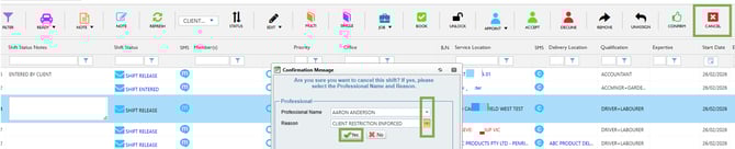 Recommend Reading: How to cancel a shift from the calendar view, click here: Cancel - Shift Action Bar.