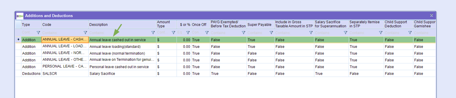 Superannuation Payable: If ticked it will include this Addition/Deduction for superannuation calculations.