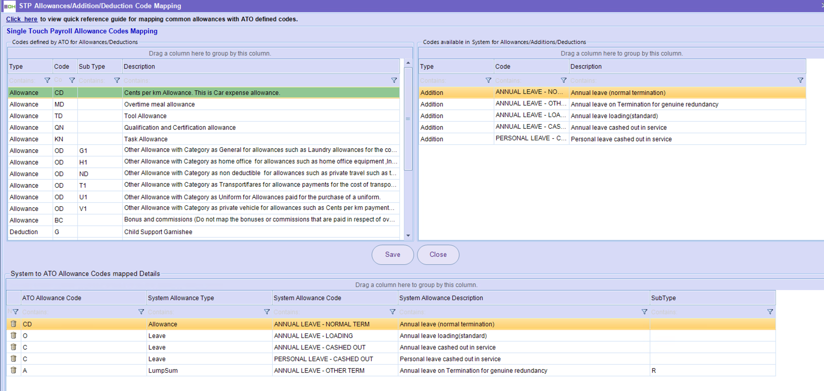 →Allowances Mapping and Single Touch Payroll Allowance Codes Mapping screen opens -