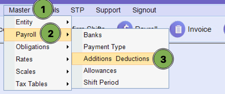 1. In the Finance Portal select Master → Payroll → Additions Deductions