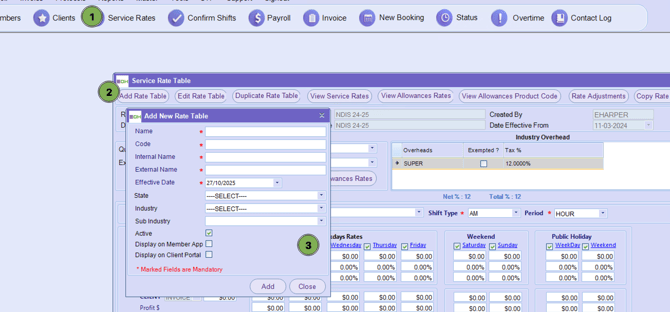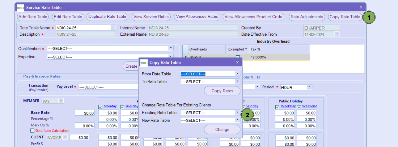 Increases to Pay and Charge rates typically take effect from a specific date. Shifts dated before this effective date must still be processed using the previous rates. To ensure correct rate application, follow the steps below to create and set your new rates. This setup can be done at any time, without requiring actions on the effective date.