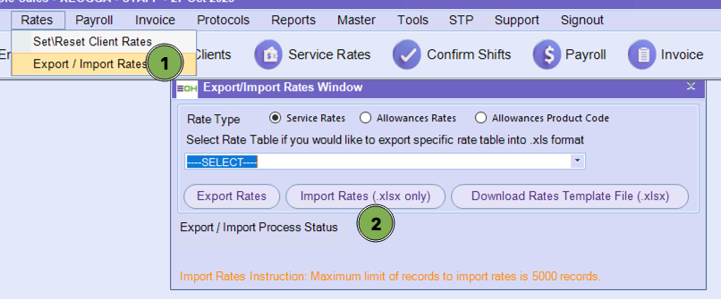 - Select Rates > Set/Reset Client Rates > Add Rate Table then