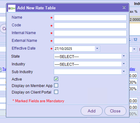 Display on Member app & Client Portal - Check these options if you want the rate table names to be visible on apps and portals.