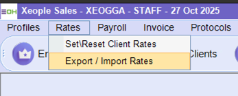 Select Rates > Set/Reset Client Rates > Add Rate Table.