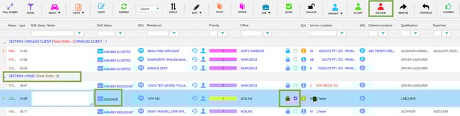 - Locate the shift where the member is assigned and select the shift using the checkbox.