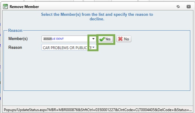- Select the reason for declining, choose the member, provide the reason, and click Yes.