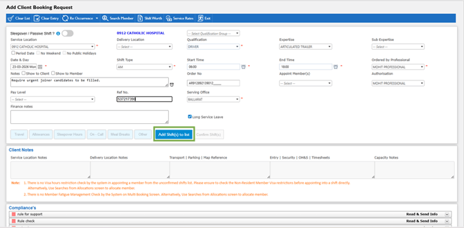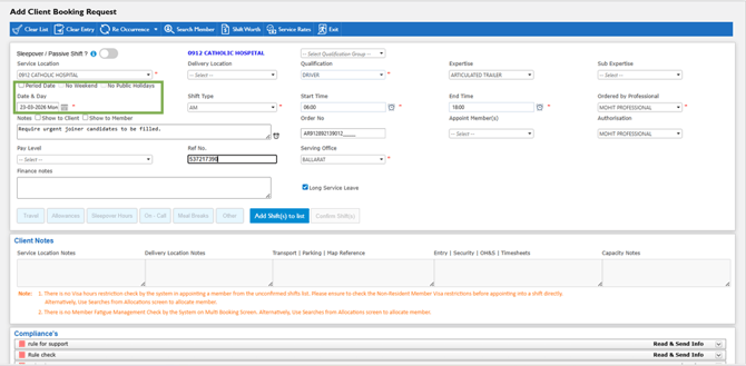 How to Enter Bookings for Multiple (Multi) Shifts/Dates